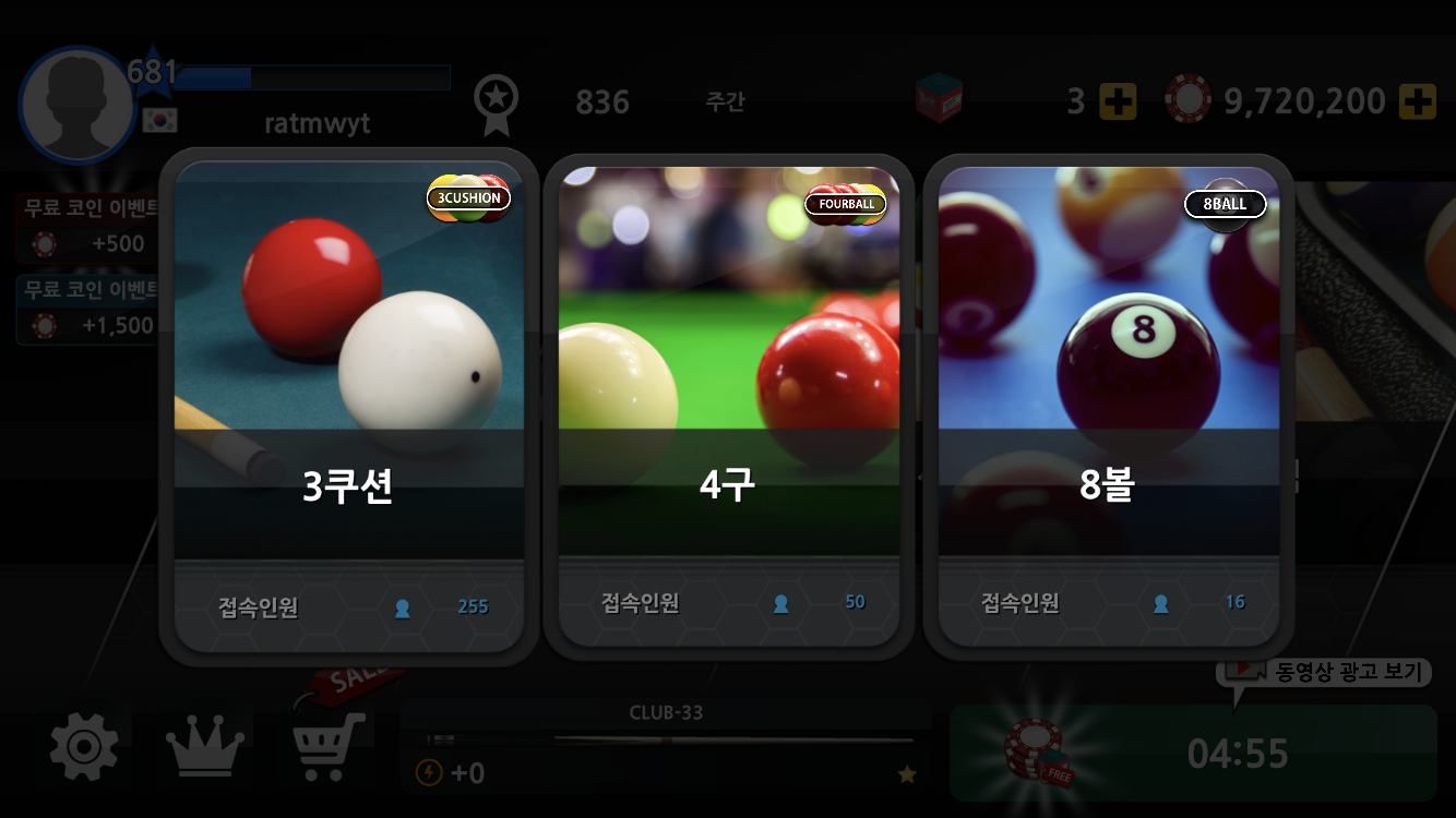 당구를 칠수있는 기회는 많지않고 그나마 핸드폰으로 3쿠션 경기를 하고있는데요