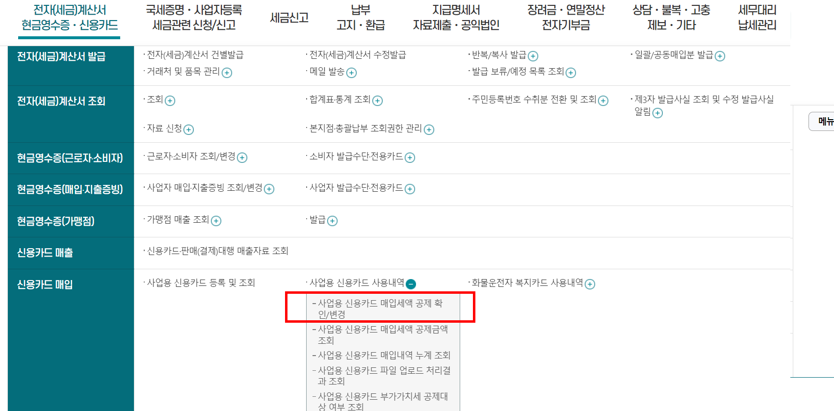 사업용신용카드 매입세액 공제 확인/변경 으로 들어갑니다.